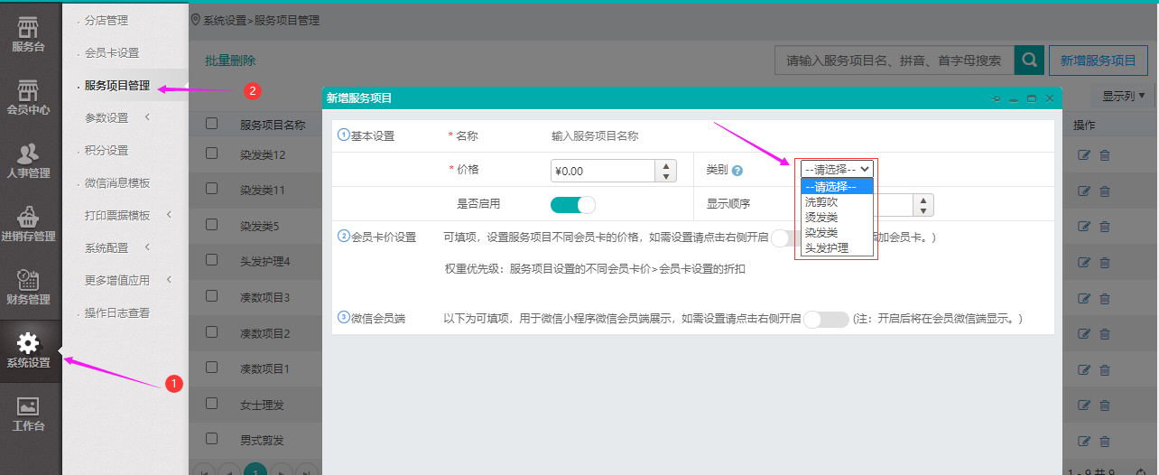 服务项目类别的作用主要是给服务项目分类,在系统设置=》参数设置下的服务项目类别操作。